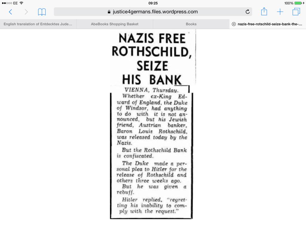 Túto smiešnu teóriu o Hitlerovi a Rothschildovcoch som už niekoľkokrát argumentačne rozmietol ako sračky po poli. Síce nie tu ale už sa nebudem opakovať. Je to kolosálna somarina, ďalší zo spôsobov ako dezorientovať úbohých gojimov.